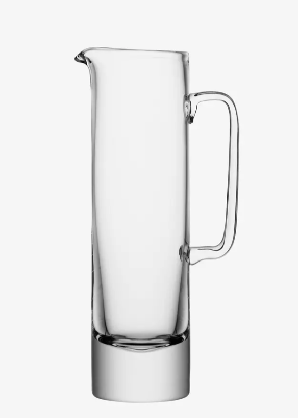 The Boris Jug exemplifies refined craftsmanship, mouth-blown by master glassblowers into an elegant silhouette. Its slender profile contrasts beautifully with a substantial weighted base, ensuring stability while pouring. The angular handle provides both visual interest and ergonomic grip, making this piece as functional as it is striking. Perfect for serving water, wine, or displaying as a sculptural accent in any discerning home.