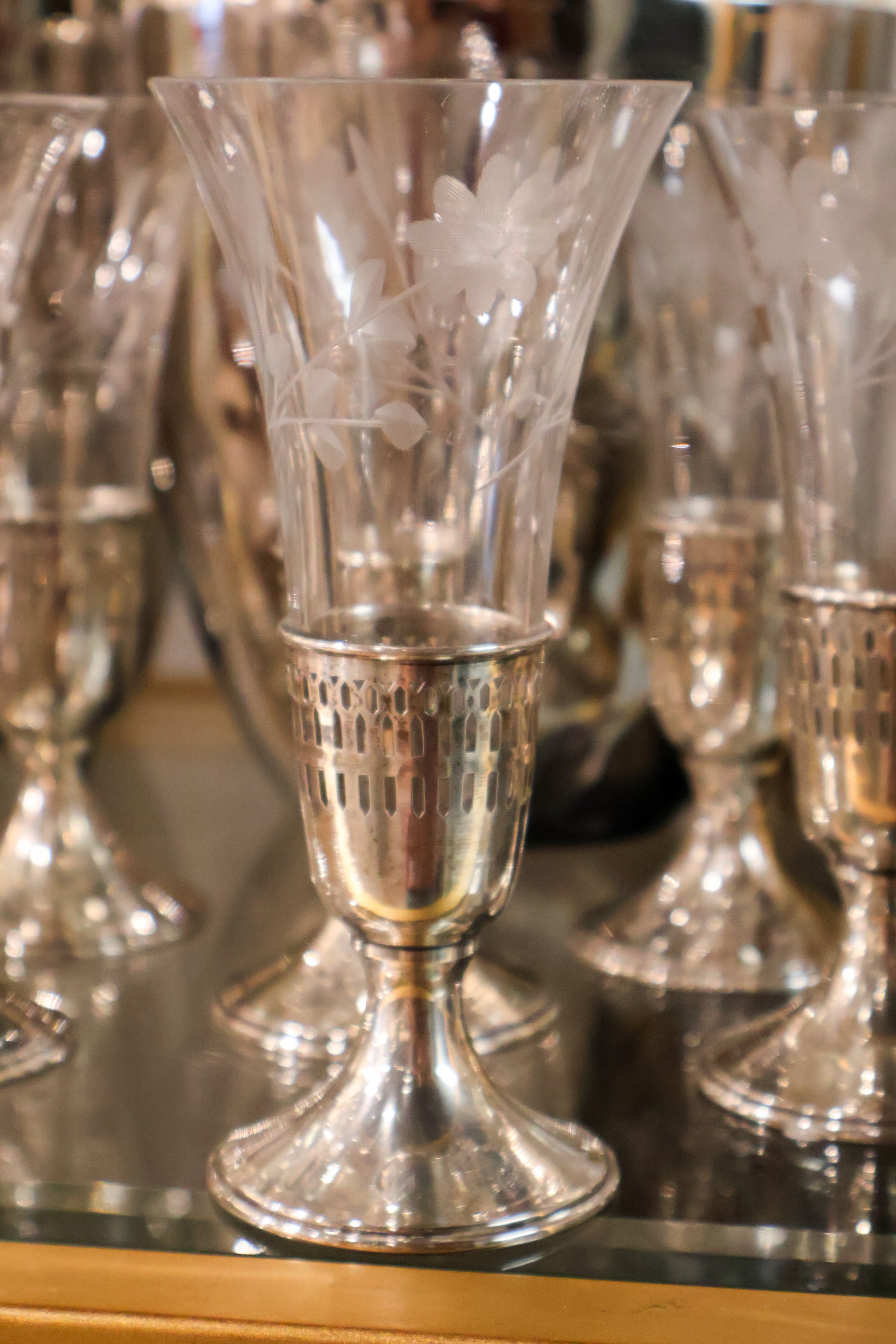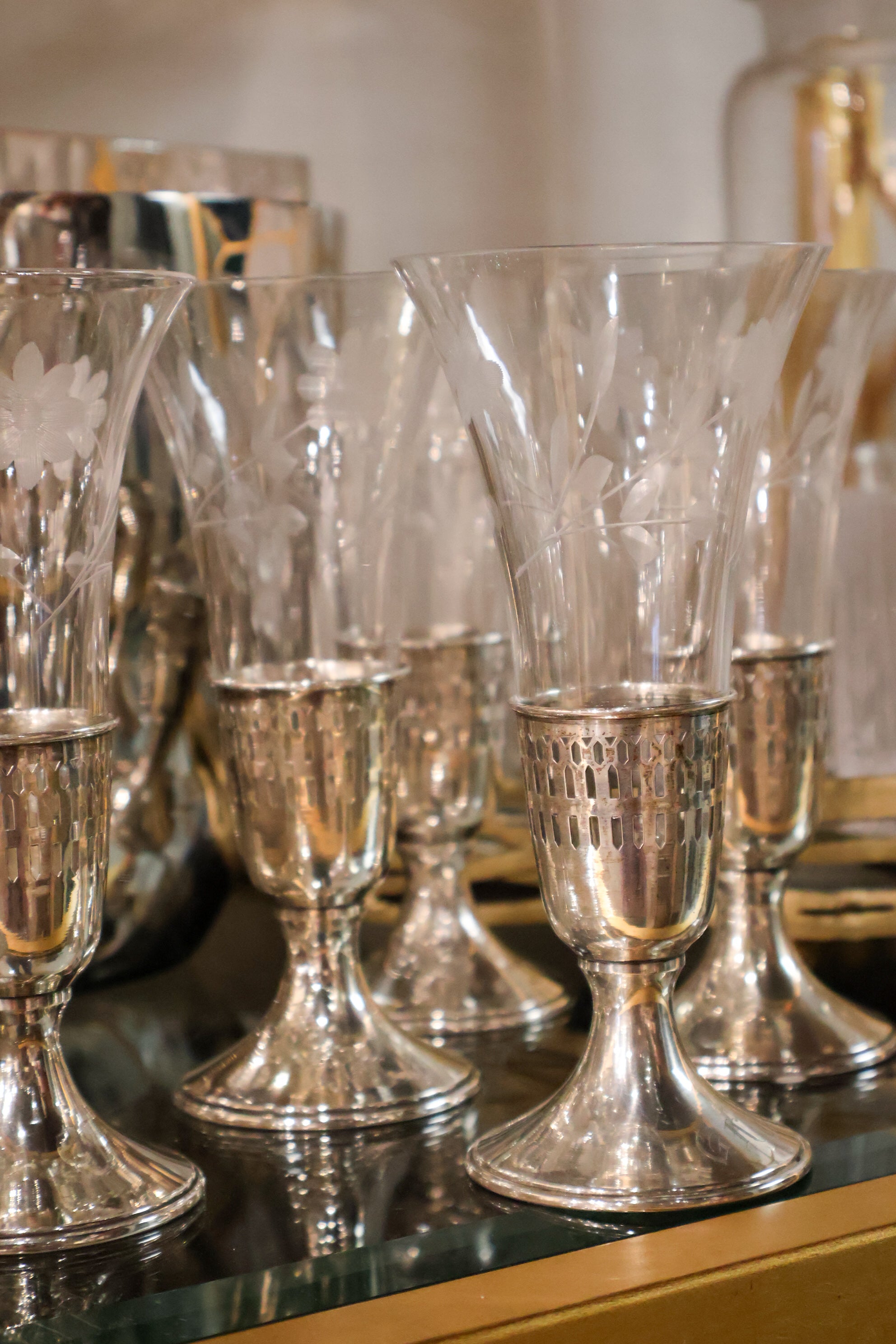 Vintage Edged Glass and Sterling Silver Glassware