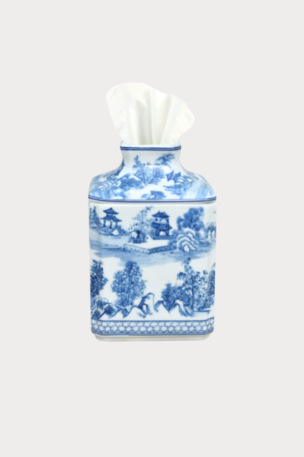 Blue and White Chinoiserie Square Tissue Box