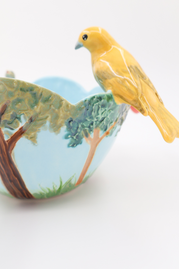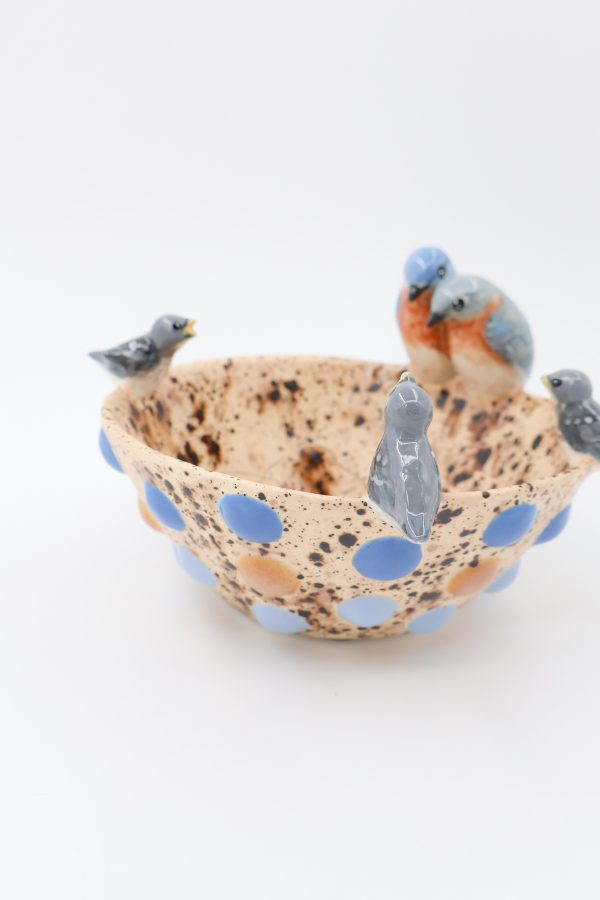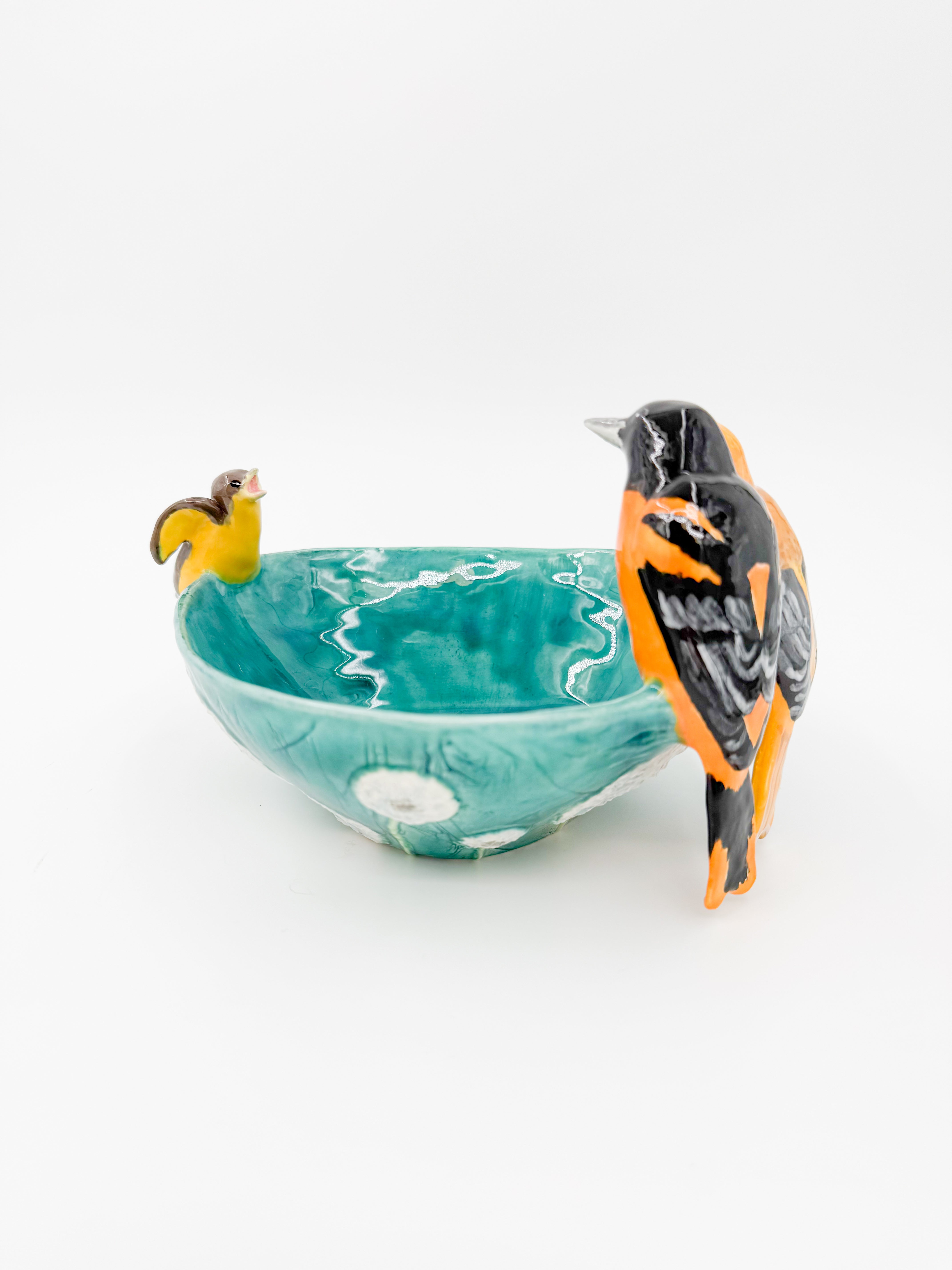 Each piece in the X-Large Birds of Mississippi collection is expertly handcrafted by Carrie Roebuck in Mississippi without the use of a pottery wheel. These unique ceramics feature detailed depictions of local Mississippi birds, combining regional wildlife inspiration with skilled craftsmanship. Every item is a custom, one-of-a-kind work, making this collection a distinctive and authentic addition for collectors and enthusiasts of fine ceramic art.