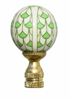Elevate your space with this exquisite 2.25" porcelain Green and White Fish Scale Ball Finial. Featuring a timeless fish scale pattern in elegant green and white, this finely crafted finial adds a refined touch to lamps, curtain rods, or decorative accents. Its subtle yet sophisticated design enhances any décor with classic charm and enduring style.
