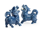 These exquisite ceramic foo dogs showcase traditional craftsmanship with their hand-painted blue and white glaze. Standing 7.5 inches tall with graceful proportions, this matched pair brings timeless elegance to any space. Each piece features meticulous detailing that captures the protective spirit of these iconic guardian figures. Perfect for shelving, mantels, or as a distinguished accent in contemporary or classic interiors.