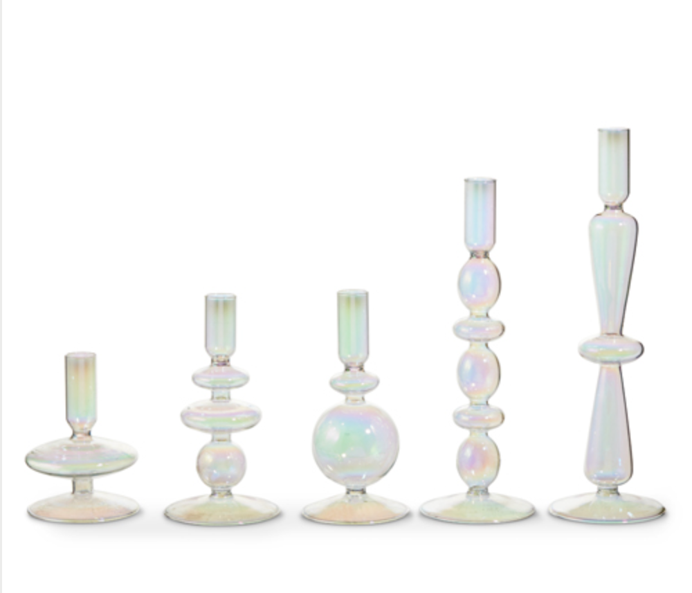Add a shimmering touch to your space with these Iridescent Candle Holders! Designed to beautifully cradle your favorite candlesticks—like our Erik and Ester candles—they come in five different sizes to suit any setting. Watch as light dances off their colorful, reflective surfaces, creating a magical glow that brings warmth and whimsy to every room. Perfect for turning ordinary candlelight into an extraordinary experience!