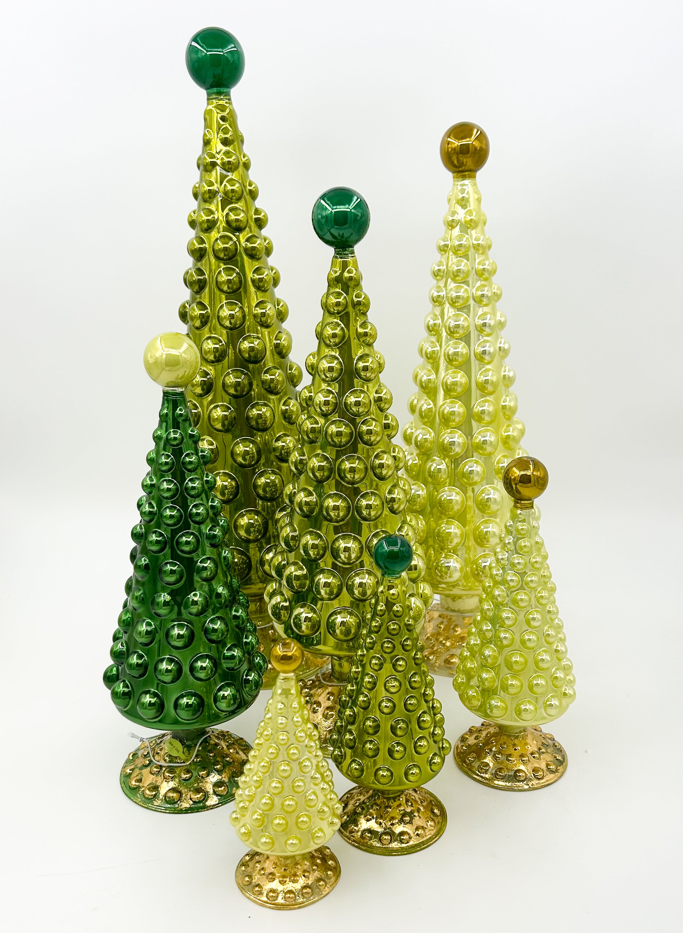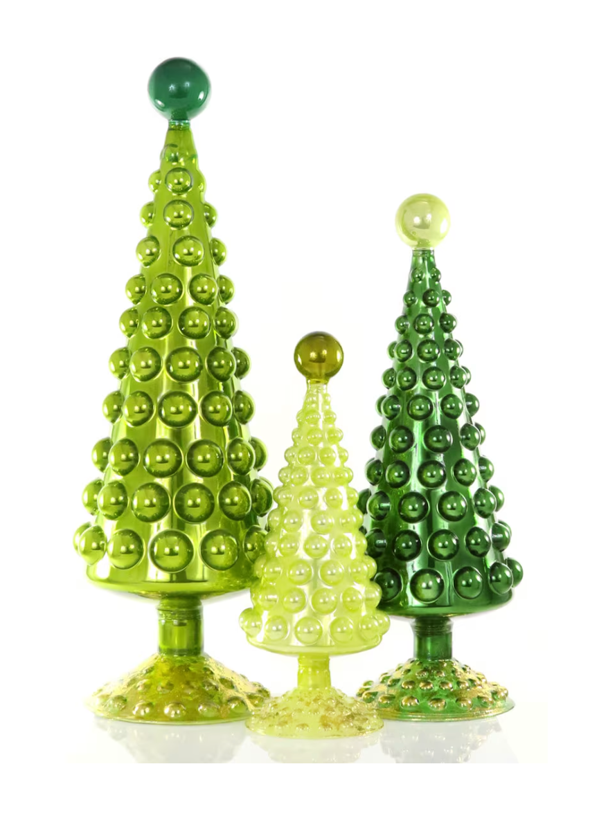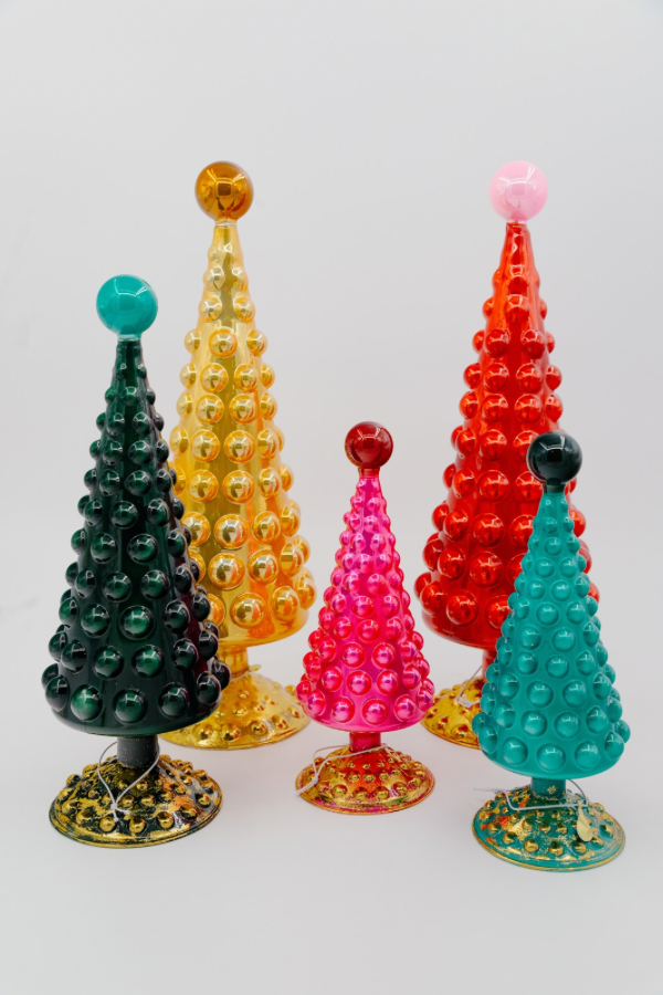 Add a splash of whimsy to your collection with the Cody Foster Hobnail Tree. Crafted from glass with charming hobnail texture, these delightful trees come in multiple vibrant colors and three sizes, perfect for mixing and matching. Whether displayed solo or as a set, they bring playful sparkle and festive cheer to any space. Collect them all and watch your holiday décor grow!