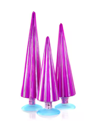 Celebrate the season with Cody Foster Carnival Trees! These glass trees feature a stripped cone shape and come in three sizes, each resting on a vibrant, differently colored base. Perfect for collectors, they add a playful and colorful touch to your holiday display or everyday décor.