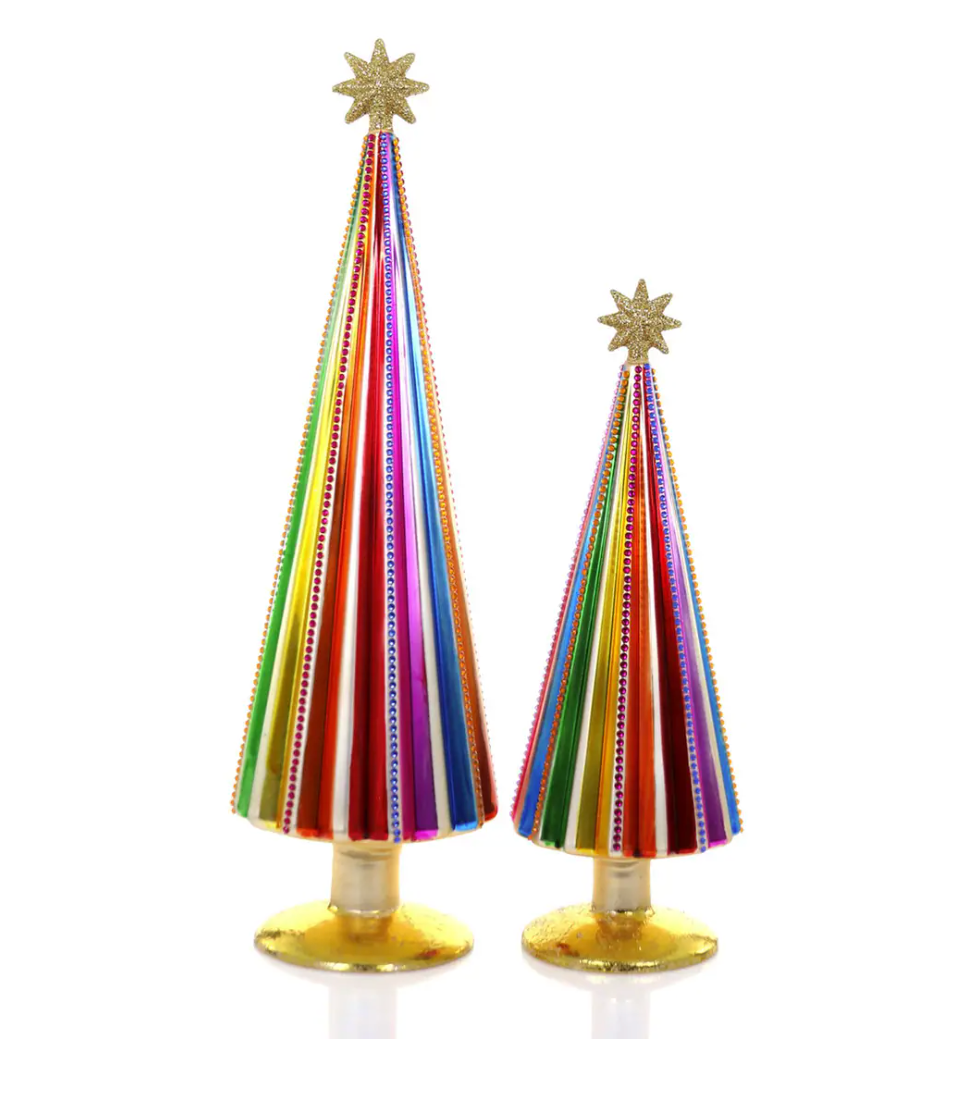 Celebrate the holiday season with the 25-Cody Foster Narrow Spectrum Tree, a colorful striped glass Christmas tree that bursts with bright festive cheer. Each vibrant stripe adds a playful touch to your decorations, making it a standout collectible for those who love unique holiday décor. Perfect for adding a splash of joy and color to your home, this tree sparks merry memories year after year.