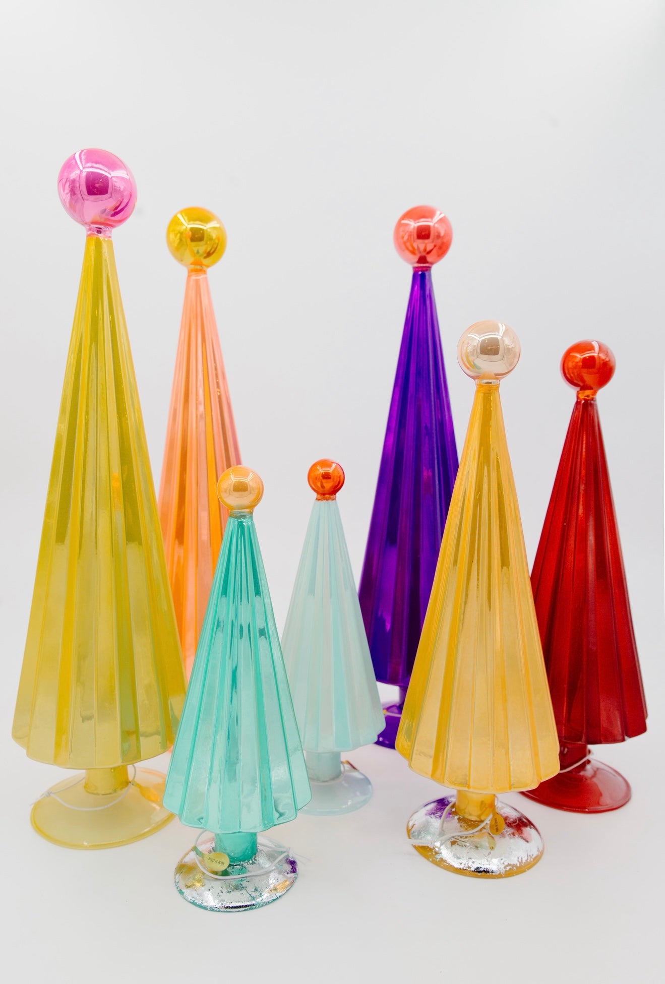 Add a splash of holiday cheer with Cody Foster Pleated Trees! These shiny, bright glass trees feature colorful pleats and a charming ball finial on top. Everyone’s favorite festive decoration, they’re perfect for spreading joy and sparkle. Collect them all to create your own dazzling Christmas forest!