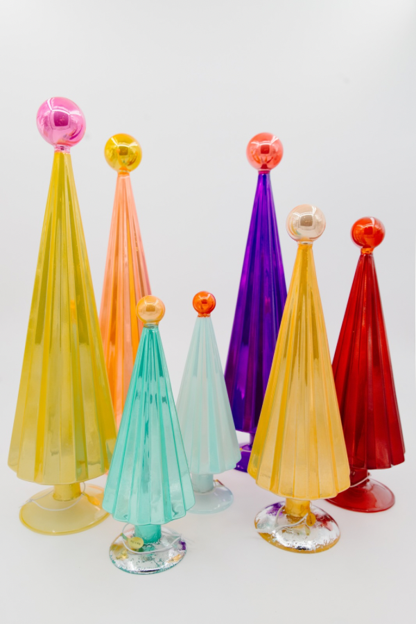 Add a splash of holiday cheer with Cody Foster Pleated Trees! These shiny, bright glass trees feature colorful pleats and a charming ball finial on top. Everyone’s favorite festive decoration, they’re perfect for spreading joy and sparkle. Collect them all to create your own dazzling Christmas forest!