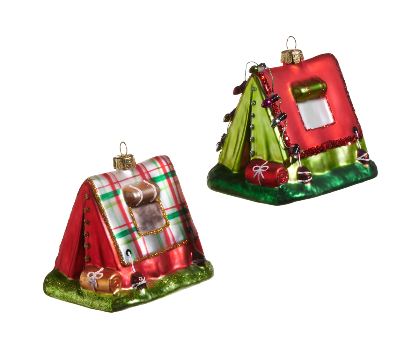 Add a festive touch with the 3.75" Holiday Pup Tent Ornament, available in two charming colors. This playful decoration brings a cozy campfire vibe to your holiday tree, perfect for pet lovers and holiday enthusiasts alike. Easy to hang and sure to spread smiles!