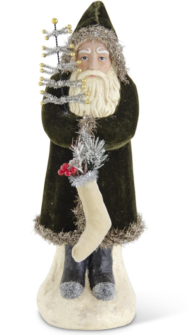 Welcome the holiday spirit with this charming 16.75-inch Santa dressed in a dark green coat, holding a festive Christmas tree. Perfect for adding a cozy, playful touch to your seasonal decor, this Santa brings warmth and joy to any room. Its detailed design makes it an ideal centerpiece or accent for your holiday celebrations.