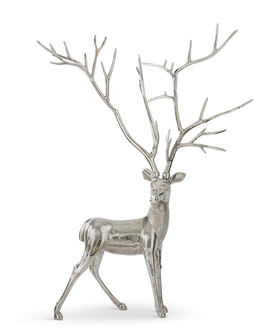 Bring holiday cheer to your home with this 58-inch Silver Metal Standing Deer. Its sleek metallic finish adds a modern sparkle, perfect for brightening any Christmas display. Standing tall with elegant posture, this deer is a playful yet stylish way to welcome the festive season indoors or out.