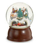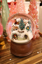 Bring a touch of whimsy to your decor with this colorful resin water-snow globe. Measuring 5" in diameter and 6.5" tall, it features a charming house and train design. Wind it up to hear "Over the River and Through the Woods" as the scene comes alive, creating a joyful and nostalgic atmosphere perfect for any room.