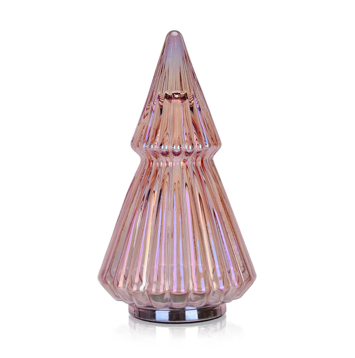 This Pink Iridescent Glass Tree brings elegance and subtle shimmer to any space. Its delicate iridescent finish captures light beautifully, creating a refined focal point that complements sophisticated decor. Perfect for adding a touch of artistry and gentle color, this glass tree enhances both modern and classic interiors with its graceful presence.