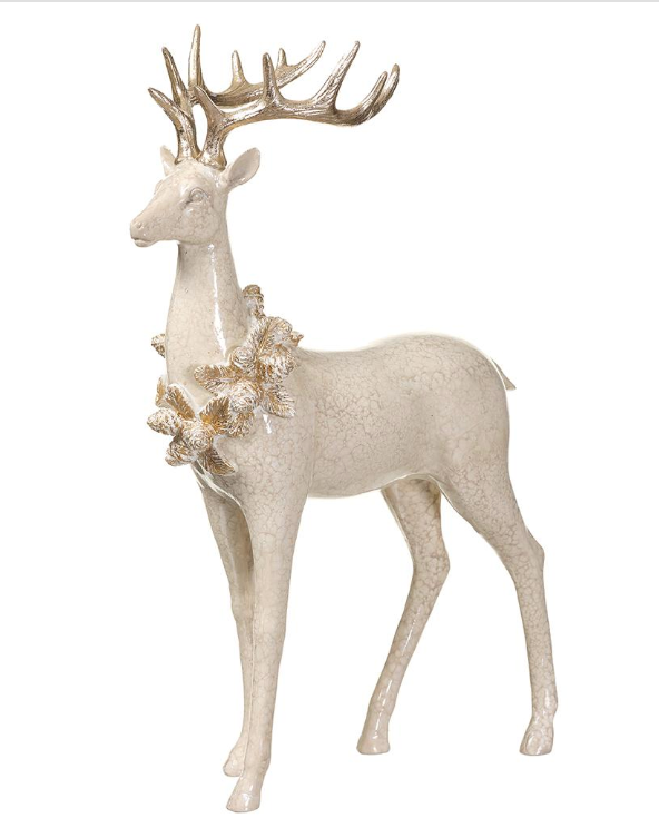 Elevate your holiday décor with this 19" Champagne Reindeer, a refined accent piece that brings understated elegance to any setting. Its graceful design and subtle champagne finish add a touch of sophistication, making it perfect for mantel displays, tabletops, or festive centerpieces. This reindeer blends classic charm with modern style, enhancing your seasonal ambiance with a polished, tasteful flair.