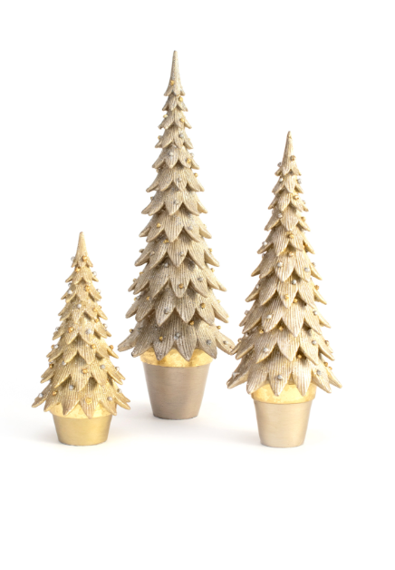 Add a touch of festive sparkle with this 9" Tannenbaum Cone Tree in dark champagne. Handpainted with shimmering gold accents on durable resin, it brings a playful glow to your holiday décor. Perfect as a centerpiece or accent, this charming piece adds warmth and whimsy to any room.