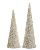 Add a touch of festive sparkle with these pearl embellished cone trees! Available in two sizes—17" and 14.5" tall—each tree brings a unique charm to your holiday décor. Perfect for tabletops or mantels, their soft pearl details add elegance while creating a playful winter wonderland vibe. Mix and match sizes to create your own magical forest! Note: sold individually, not as a set.
