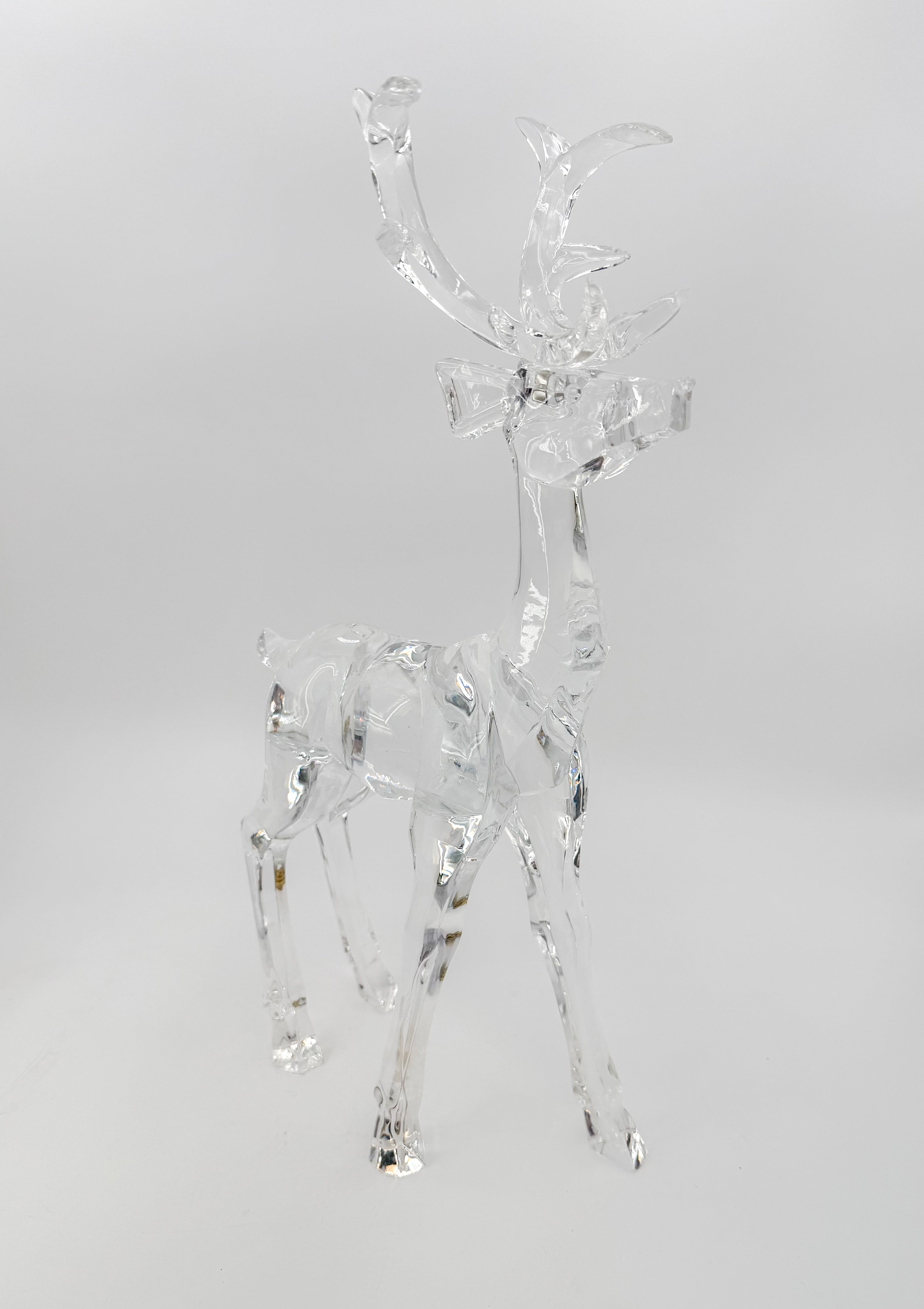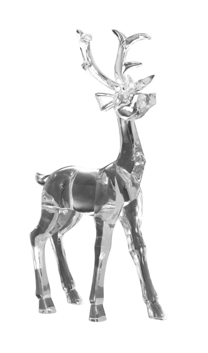 This elegant 16.9" acrylic deer sculpture features a smooth, glass-like finish and a graceful standing pose. Perfectly suited to enhance the ambiance in front of your fireplace, its clear design adds a refined, sophisticated touch to your Christmas décor.