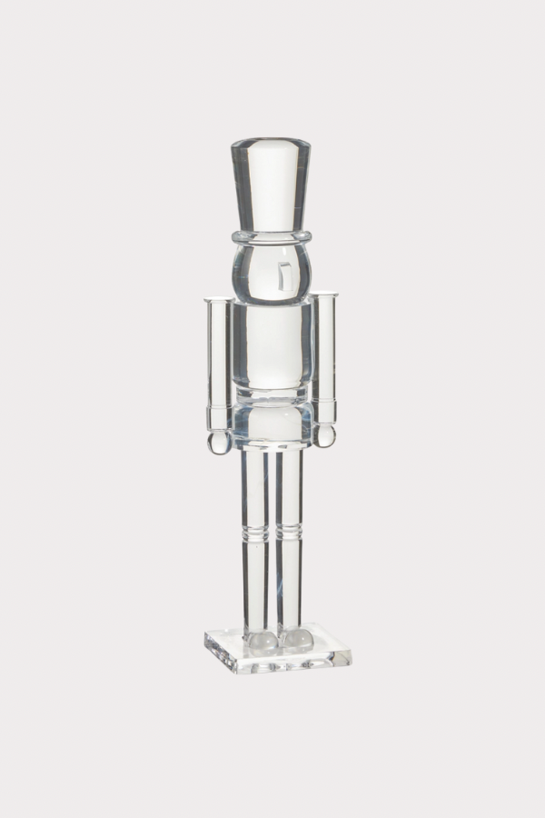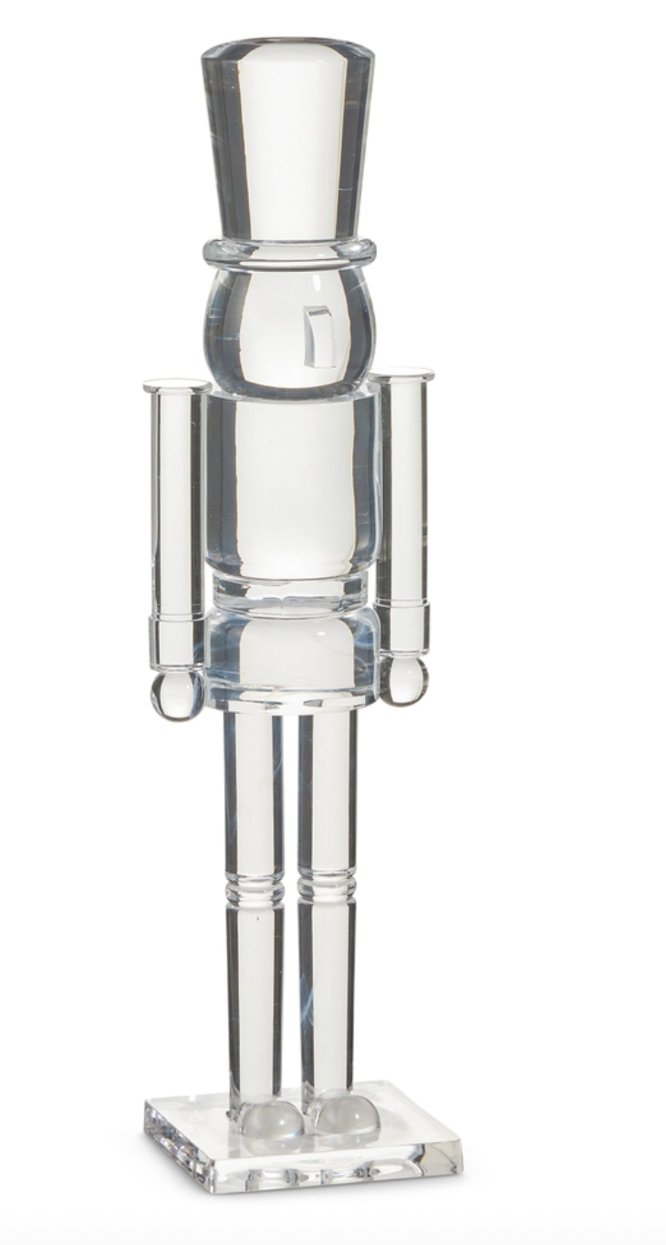 Add a touch of festive fun with this clear acrylic nutcracker, available in 10" and 14.75" sizes. Its transparent design brings a modern twist to a classic holiday decoration, perfect for brightening up any space with a playful charm. Durable and lightweight, it's easy to display year after year!