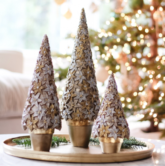 Elevate your holiday decor with the Stargrazer Cone Tree, featuring a refined gold and silver leaf pattern meticulously hand-painted on resin. This elegant piece adds a sophisticated shimmer to any space, perfect for creating a stylish and festive atmosphere. Its artisanal craftsmanship ensures a timeless accent that complements both classic and modern interiors.