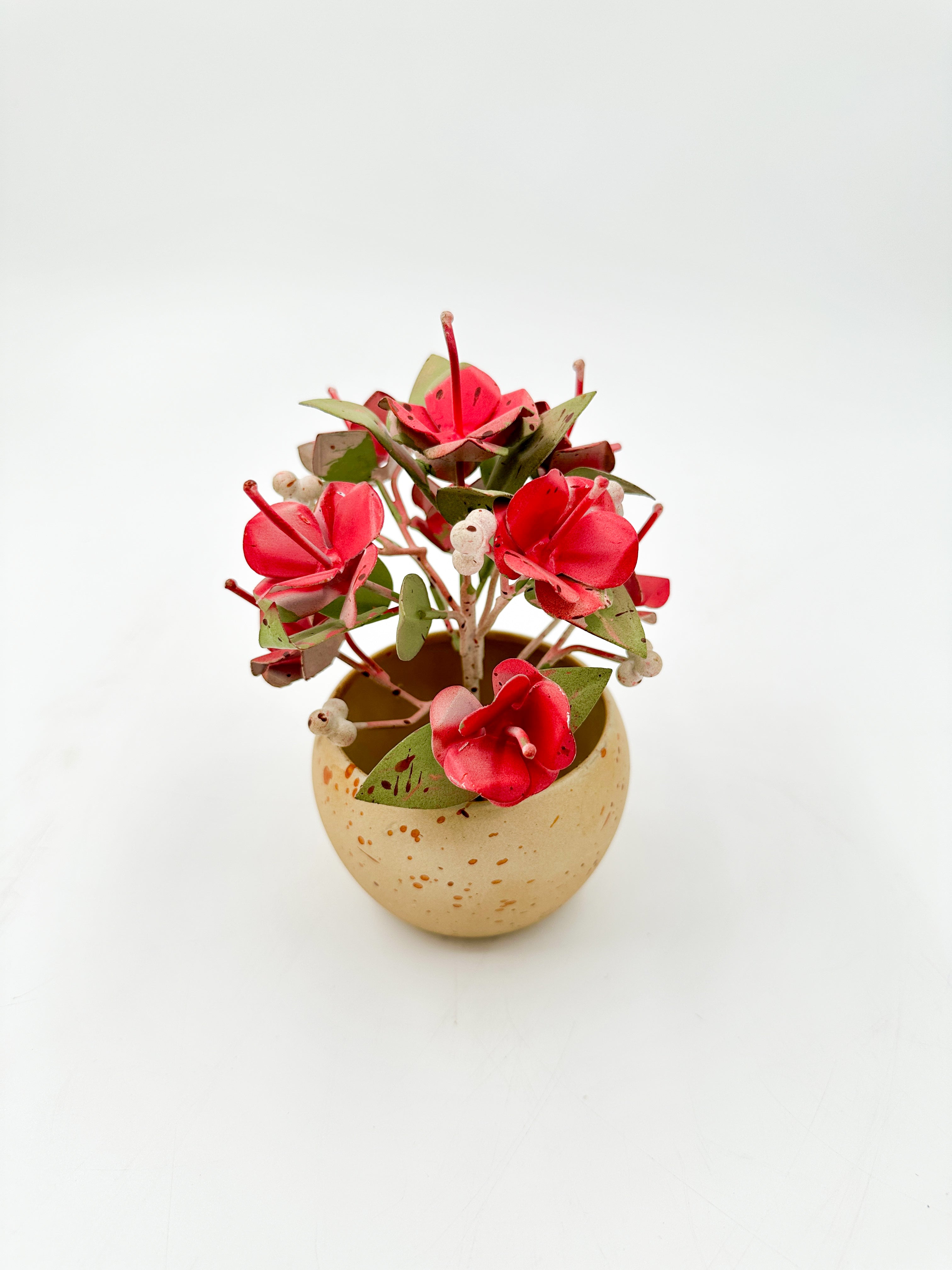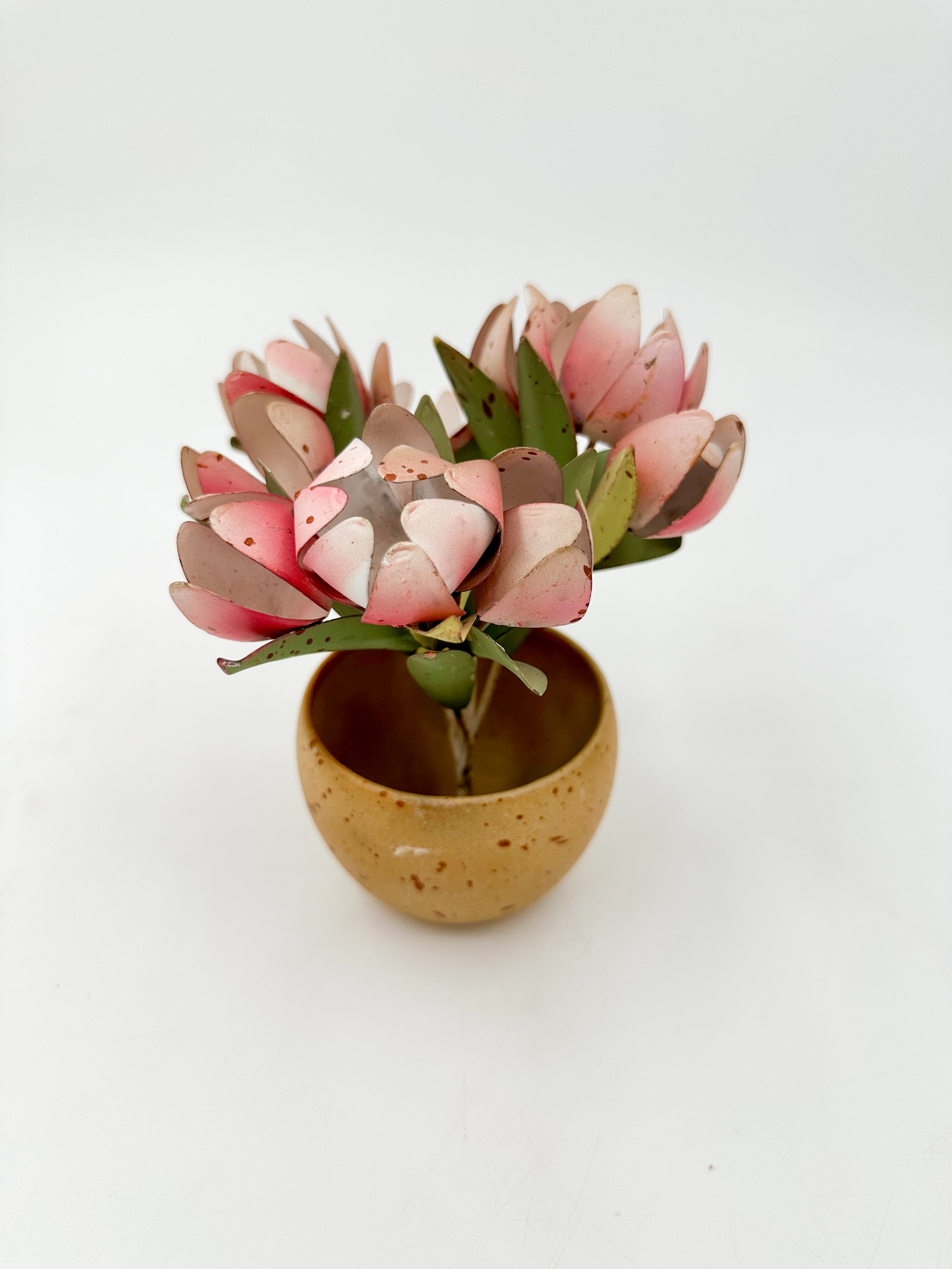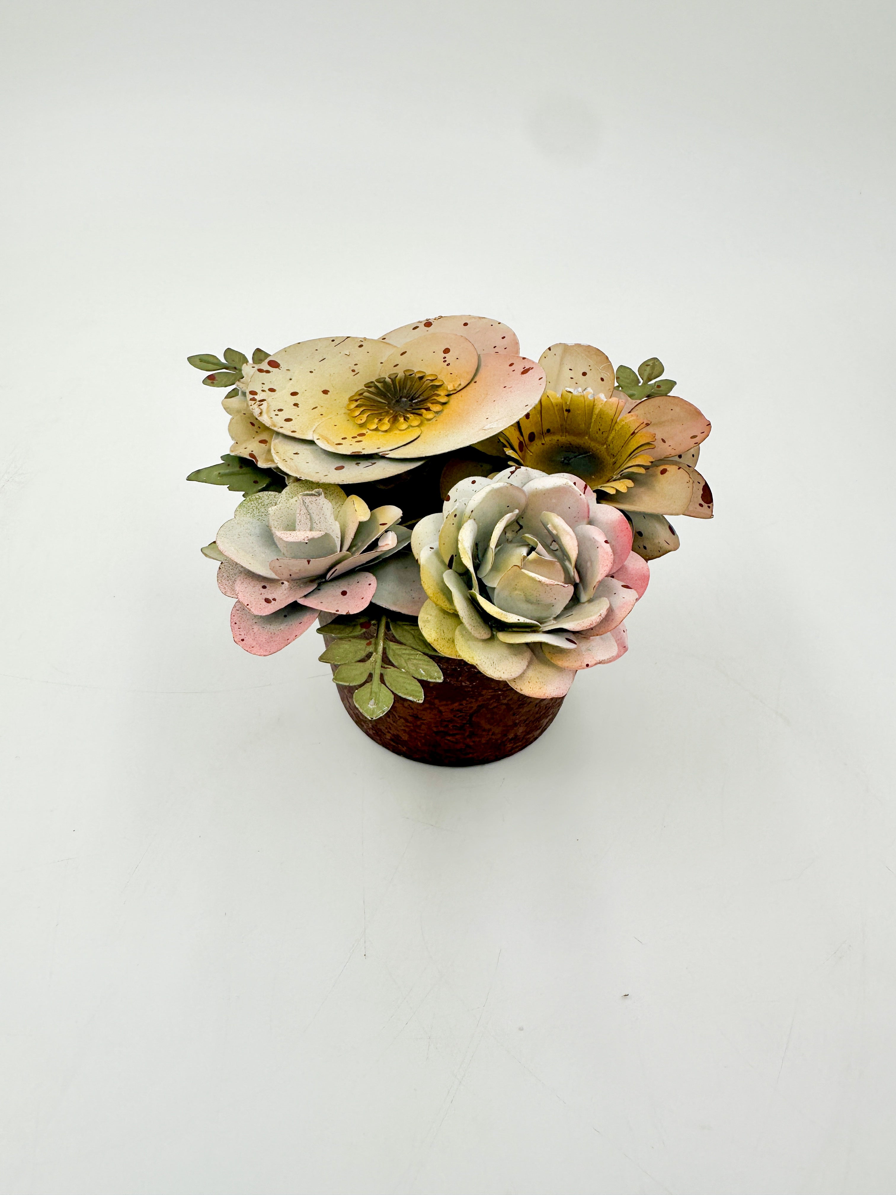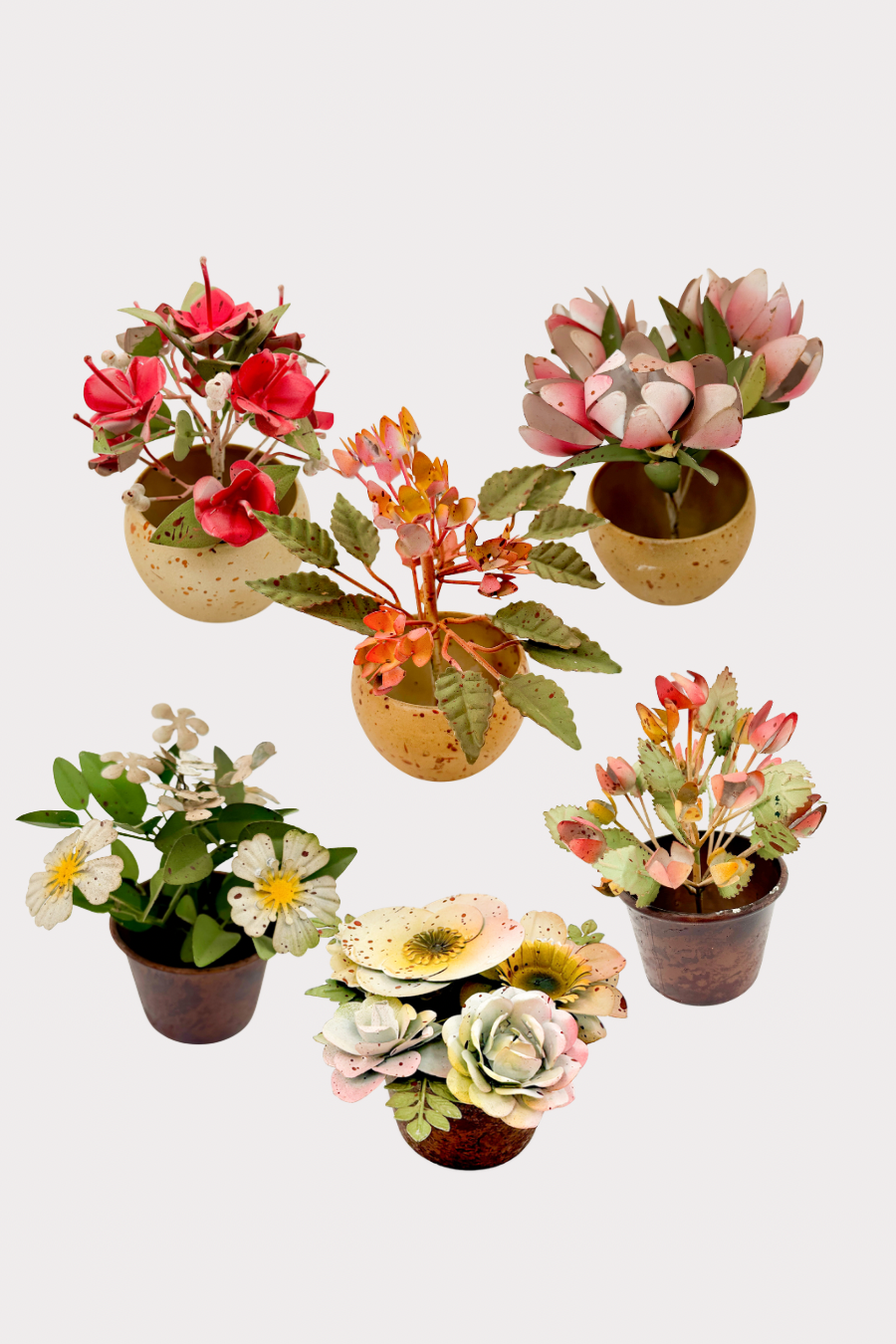Bring botanical elegance to your space with these artfully crafted metal flowers arranged in a charming pot. Each piece showcases meticulous metalwork that captures the delicate beauty of nature without requiring maintenance. Perfect for adding a refined touch to shelves, desks, or side tables, these timeless decorative accents complement any interior style. A sophisticated choice for those who appreciate enduring artistry and curated home styling.