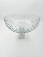 Elevate your décor with the January Bowl, featuring a clear studded glass bowl that beautifully contrasts with its sleek white marble stand. This expertly crafted piece combines tactile texture and natural stone elegance, making it a sophisticated centerpiece or functional accent for any modern space. Its sturdy marble base ensures stability, while the studded glass adds a refined visual and tactile element, perfect for serving or display.