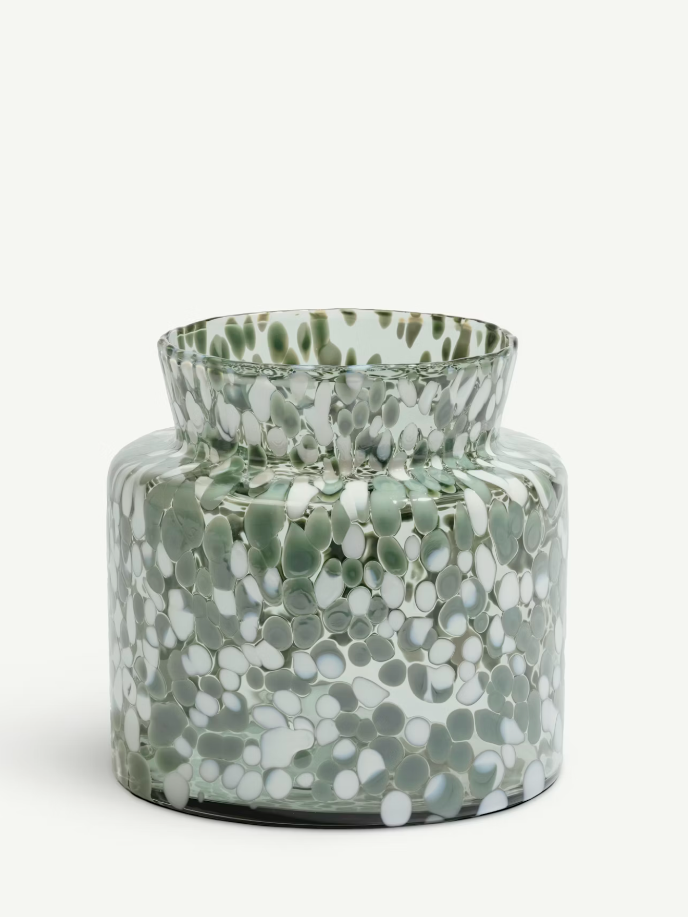 Each piece in the Meadow Vase Collection showcases the artistry of hand-blown glass, where molten material is carefully shaped and adorned with vibrant spattered accents. The organic splatter pattern creates a distinctive visual rhythm across the surface, ensuring no two vases are identical. Perfect for displaying fresh florals or standing alone as a sculptural accent, these vessels bring refined elegance and artistic character to any interior space.