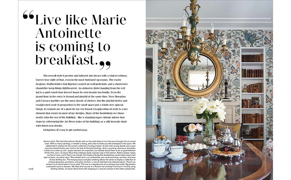 Let yourself be transported with the dreamy, fantastical homes arranged by theme in Wonderland. “Fearless Romantic” features Thornton’s own gorgeous city house. “In Here Comes the Sun,” peek into an over-the-top tropical vacation home that’s centered on citrus. Look for her to misbehave a bit in “Good to be Bad.” If refinement is more your cup of tea, the polished settings in “The New Formal” are fit for a queen. Plus take a deep dive into the most colorful technicolor homes she’s ever designed in “Super Saturated.”