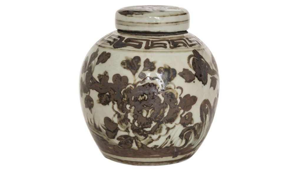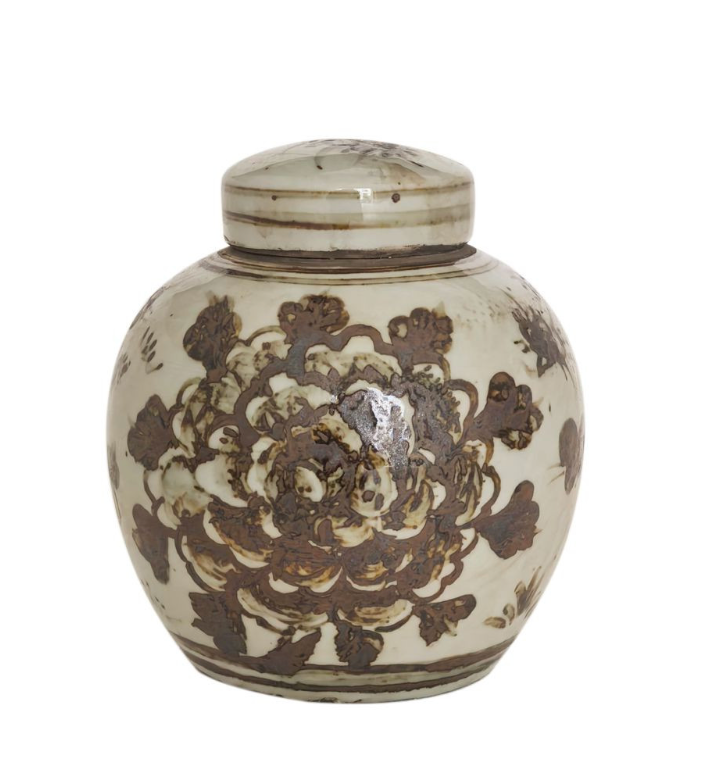 Brown and White Mini Jar Peony Motif