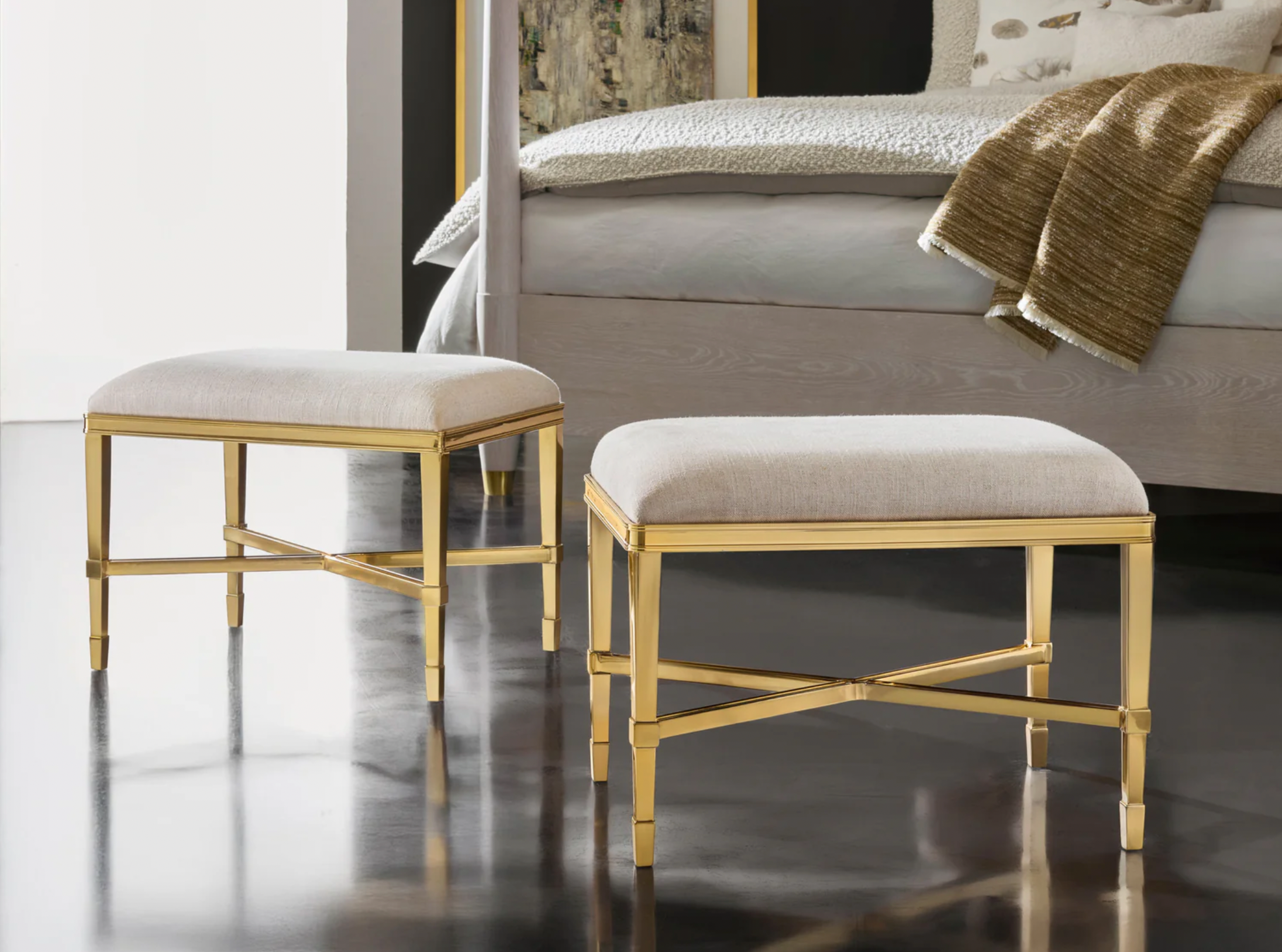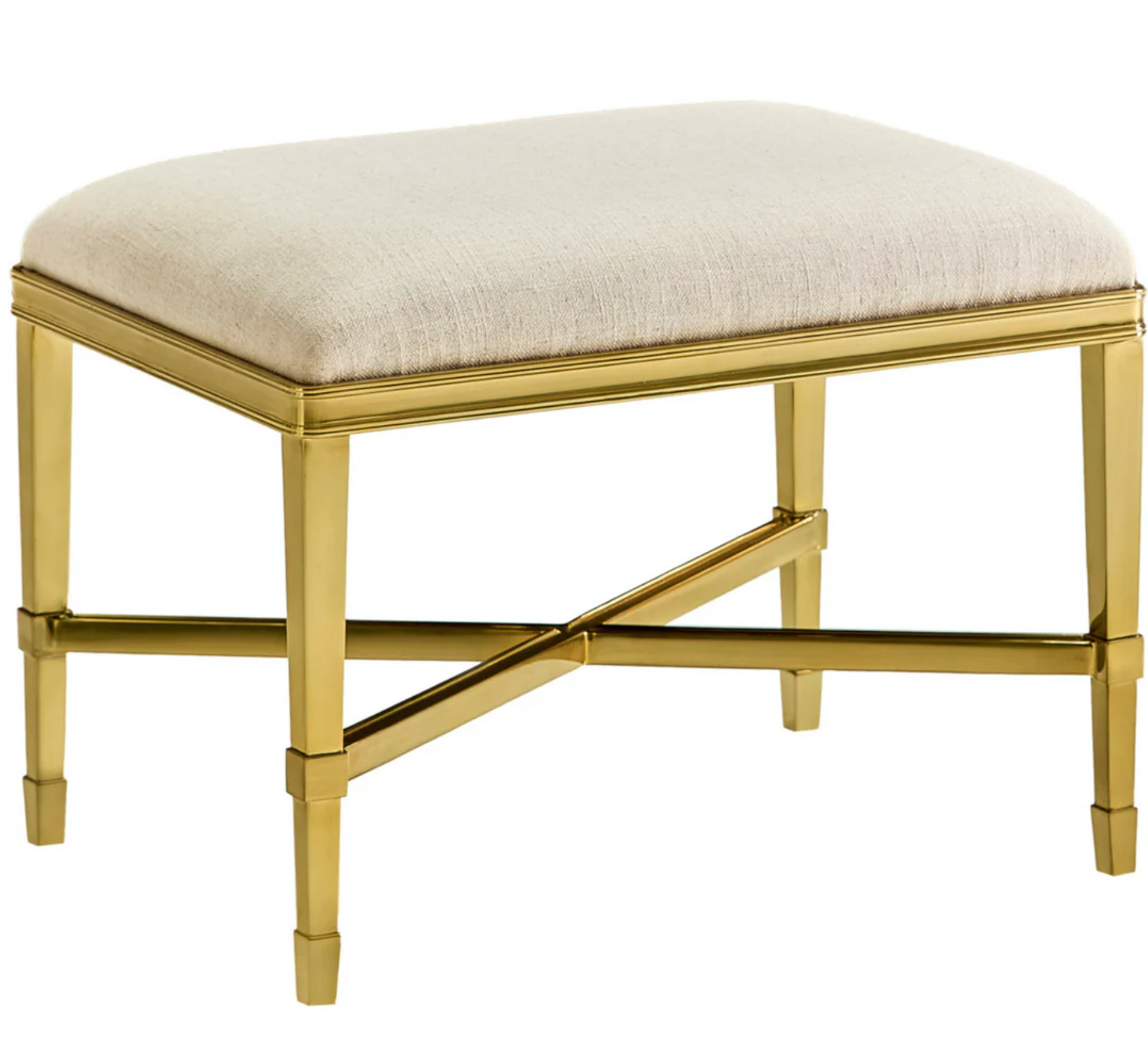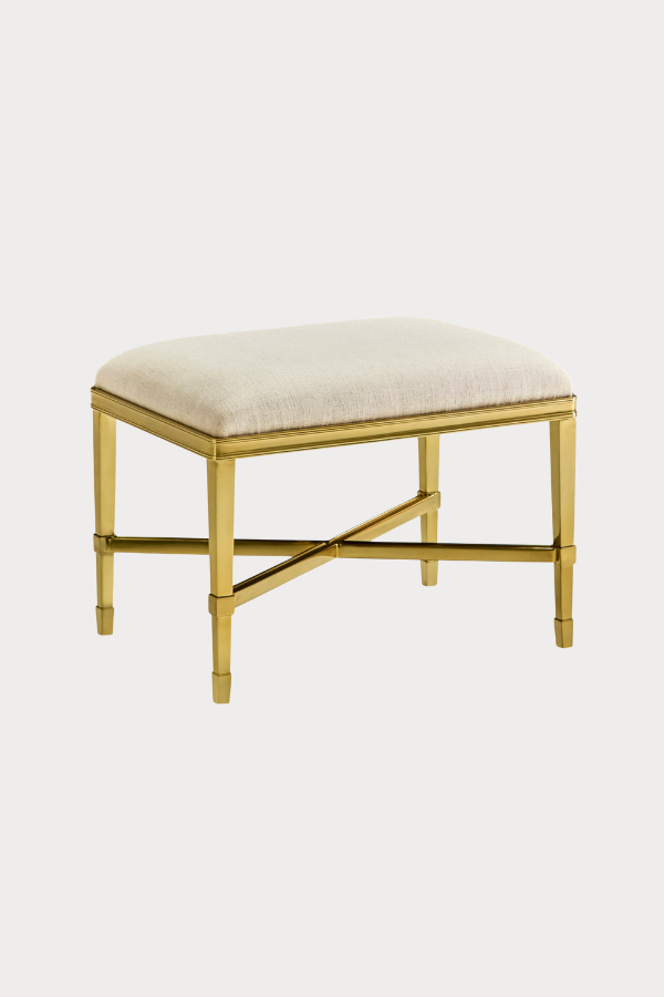 The Brielle Single Bench marries refined elegance with practical design. Its linen upholstered seat offers understated comfort, while the polished brass frame adds a touch of luxury and timeless appeal. Perfectly scaled for intimate spaces, this versatile piece elevates vanities, bedrooms, and dressing areas with subtle sophistication and functional beauty.