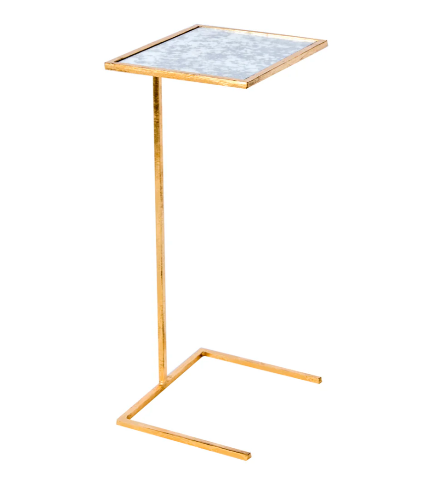Looking for a versatile and stylish addition to your lounge area? Look no further than our cigar table. With a unique base that slides easily under any sofa or side chair, this petite drink table is perfect for resting a drink or even your laptop on the antique mirror top.