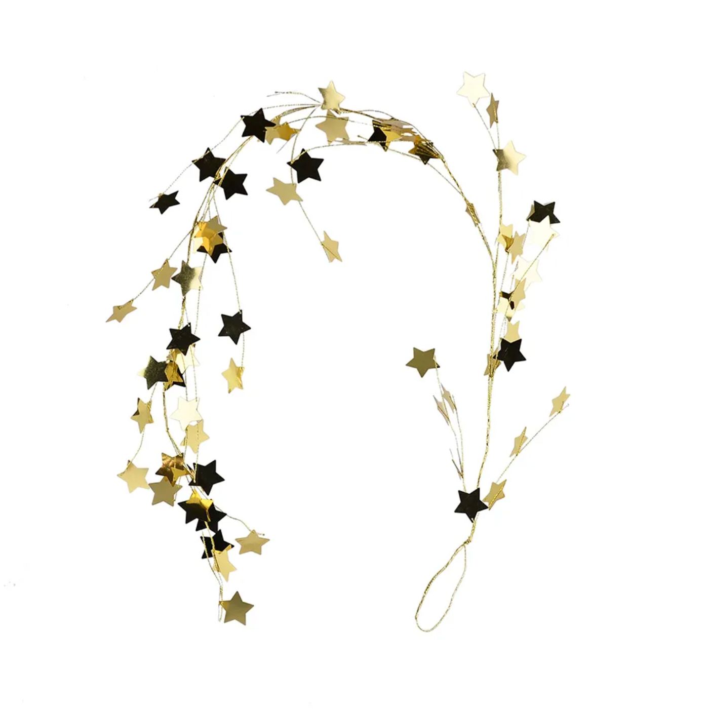 Elevate your holiday décor with 48" Gold Star Garland. Featuring shimmering gold stars delicately strung together, this garland adds a refined sparkle to any space. Perfect for accentuating mantels, staircases, or Christmas trees, its elegant design brings warmth and festive charm to your celebrations with subtle sophistication.