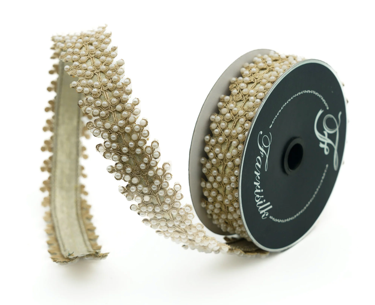 25-White/Ivory Pearl Vine Ribbon