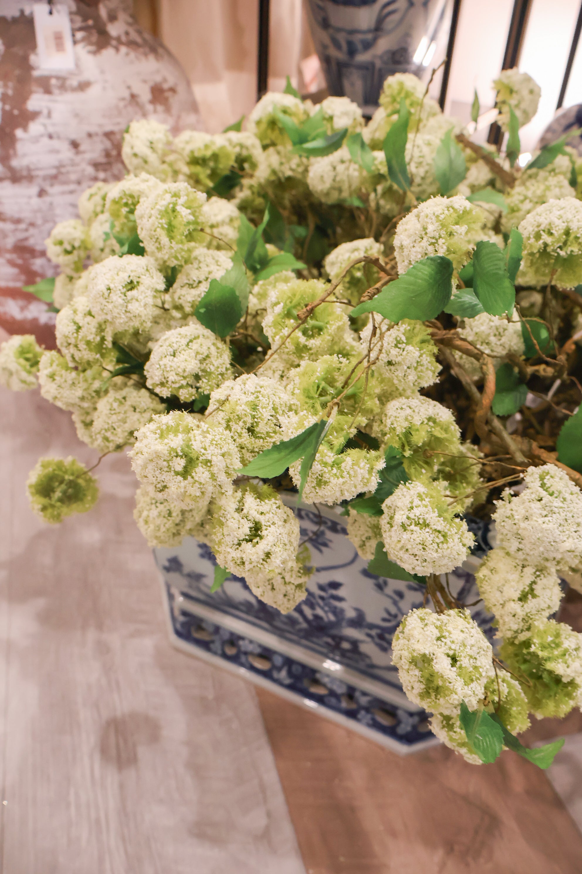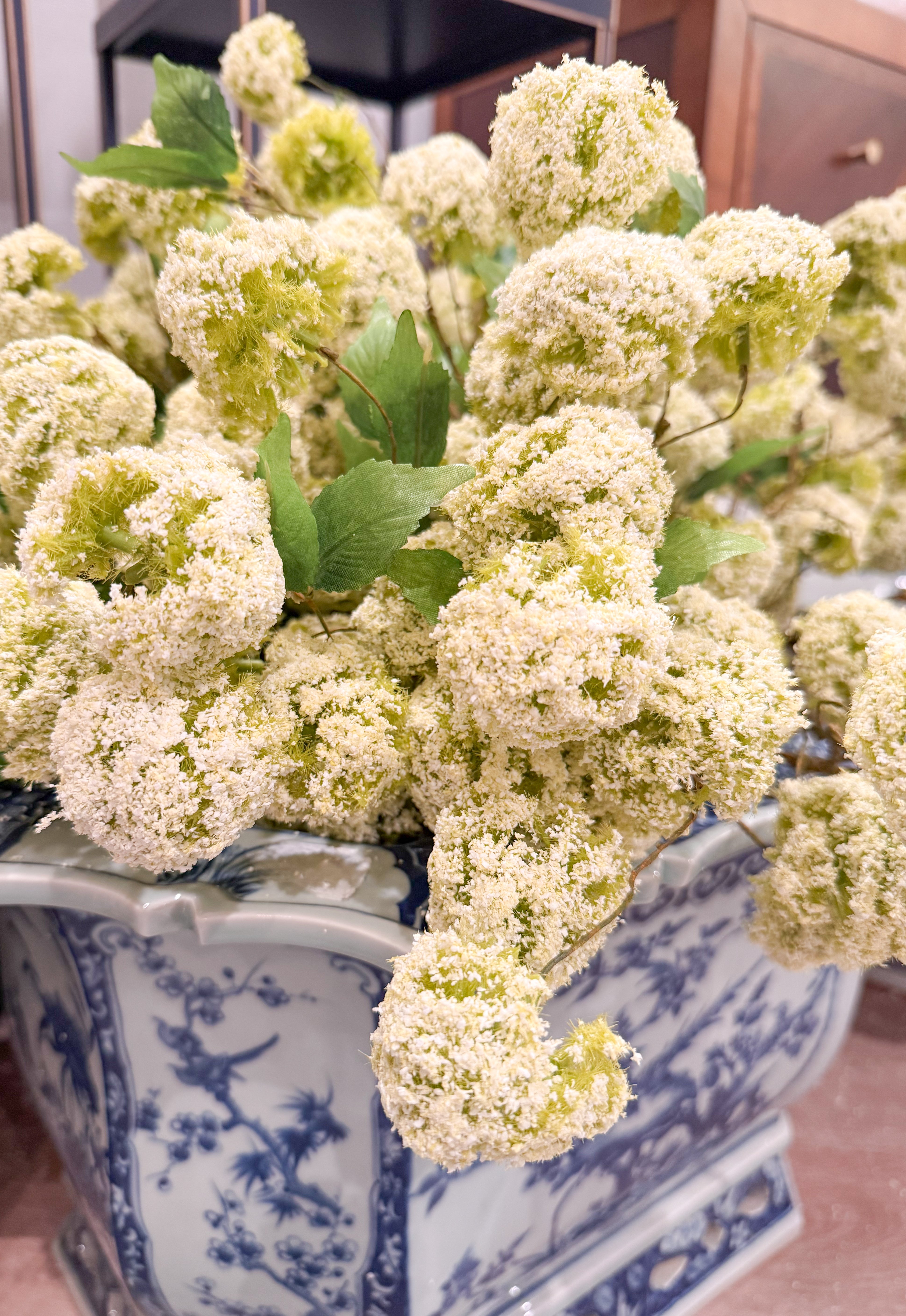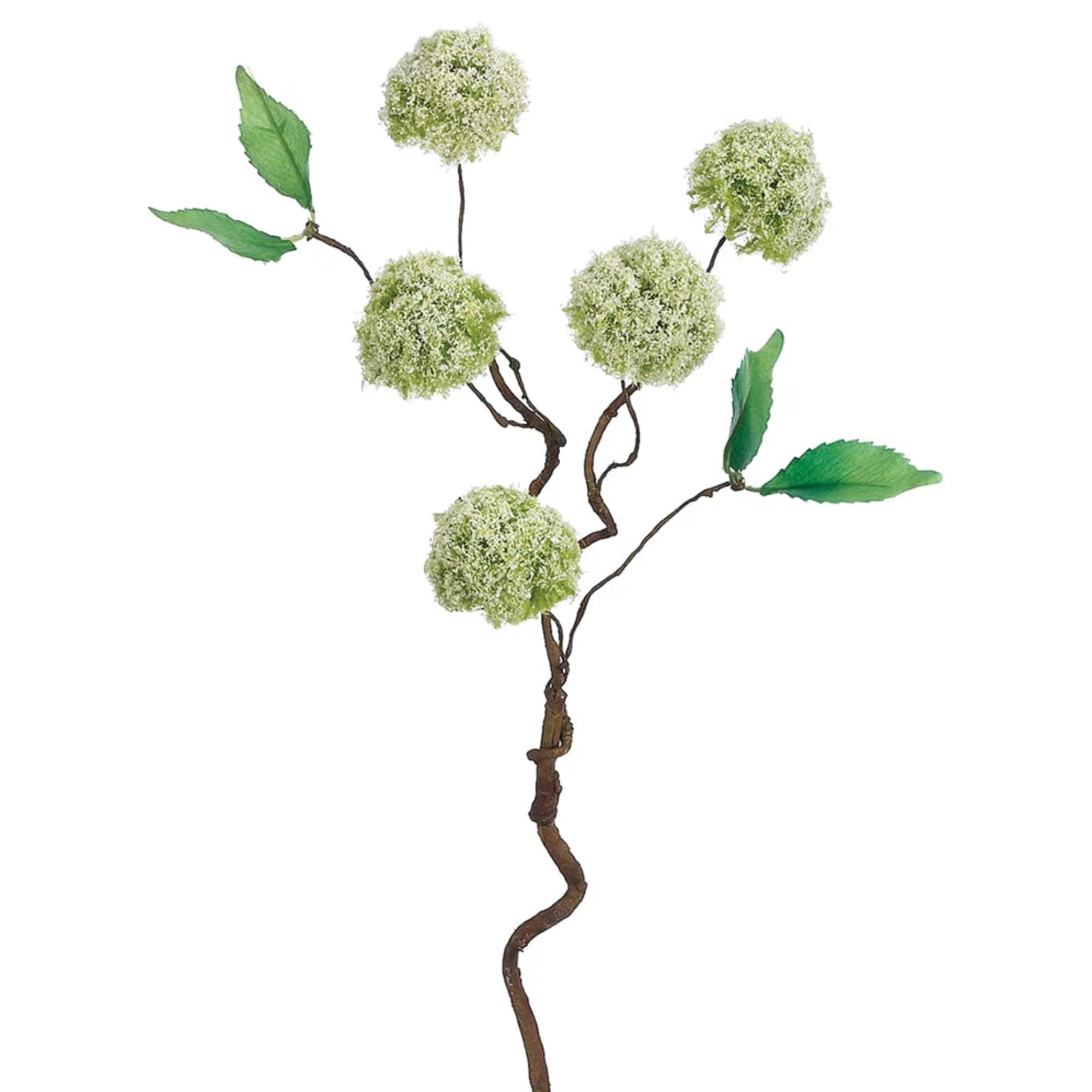 18" Hand-Wrapped Silk Mini Snowball Flower Spray -Cream/Green