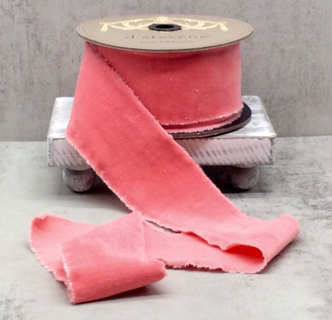 2.5" x 10yds hand torn velvet, Coral