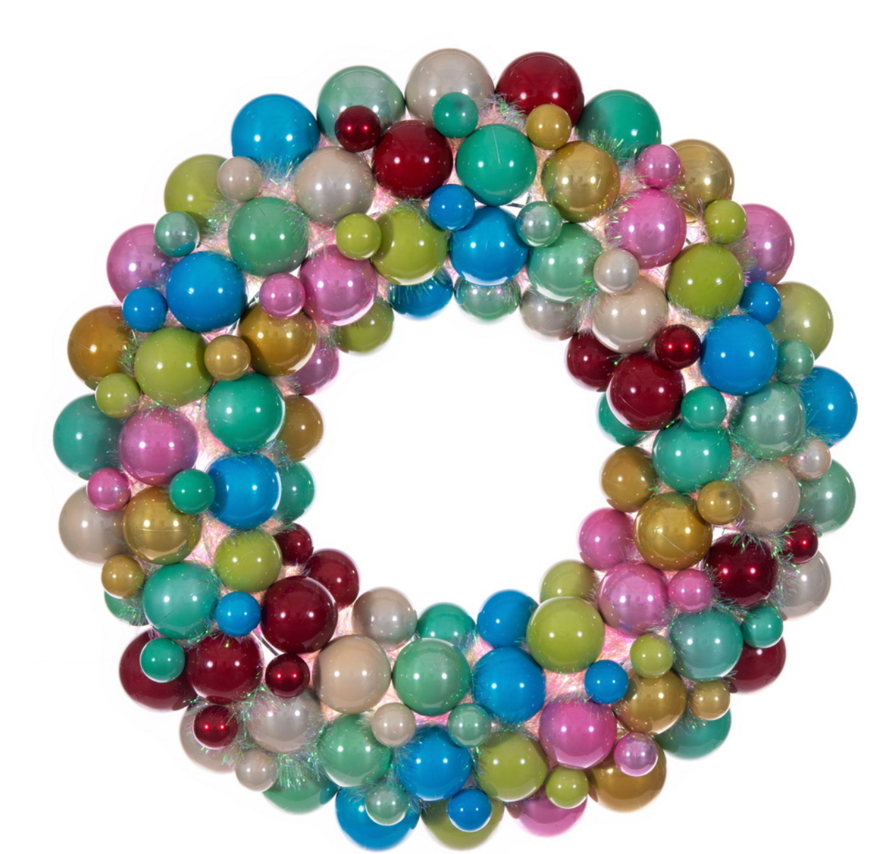 Transform your space with this exquisite multicolor pearl ball wreath, a contemporary take on classic holiday styling. Spanning 28 inches, this striking piece combines lustrous pearl-finish ornaments in a carefully curated palette of complementary hues, creating visual depth and refined sophistication. The UV-resistant construction ensures lasting vibrancy whether displayed indoors or in covered outdoor settings. Each iridescent ball catches and reflects light in subtle, enchanting ways, making it an architectural focal point for your home. Ideal for discerning decorators who appreciate quality craftsmanship and understated elegance in their seasonal presentations.