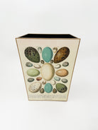 Create a unique vintage look in your bathroom with our Antique Birds Eggs collection. The antique egg motif adds a touch of elegance, while the gold metallic border adds a subtle shine. Complete the look with the matching wastebasket and tissue cover. Elevate your bathroom with timeless style.