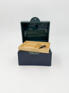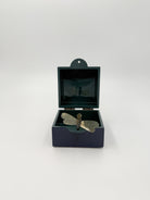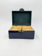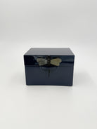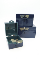 Each box in this collection is made with MDF wood covered in 13-15 layers of lacquer with a dragonfly pin closure with buffalo horn.