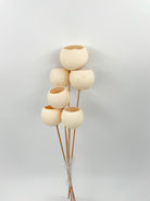 Add a whimsical touch to your decor with these bleached and dried bell caps perched on natural wooden stems. Their delicate, airy shapes bring a playful charm and rustic elegance to any space, perfect for brightening up your home with a hint of nature’s artistry.