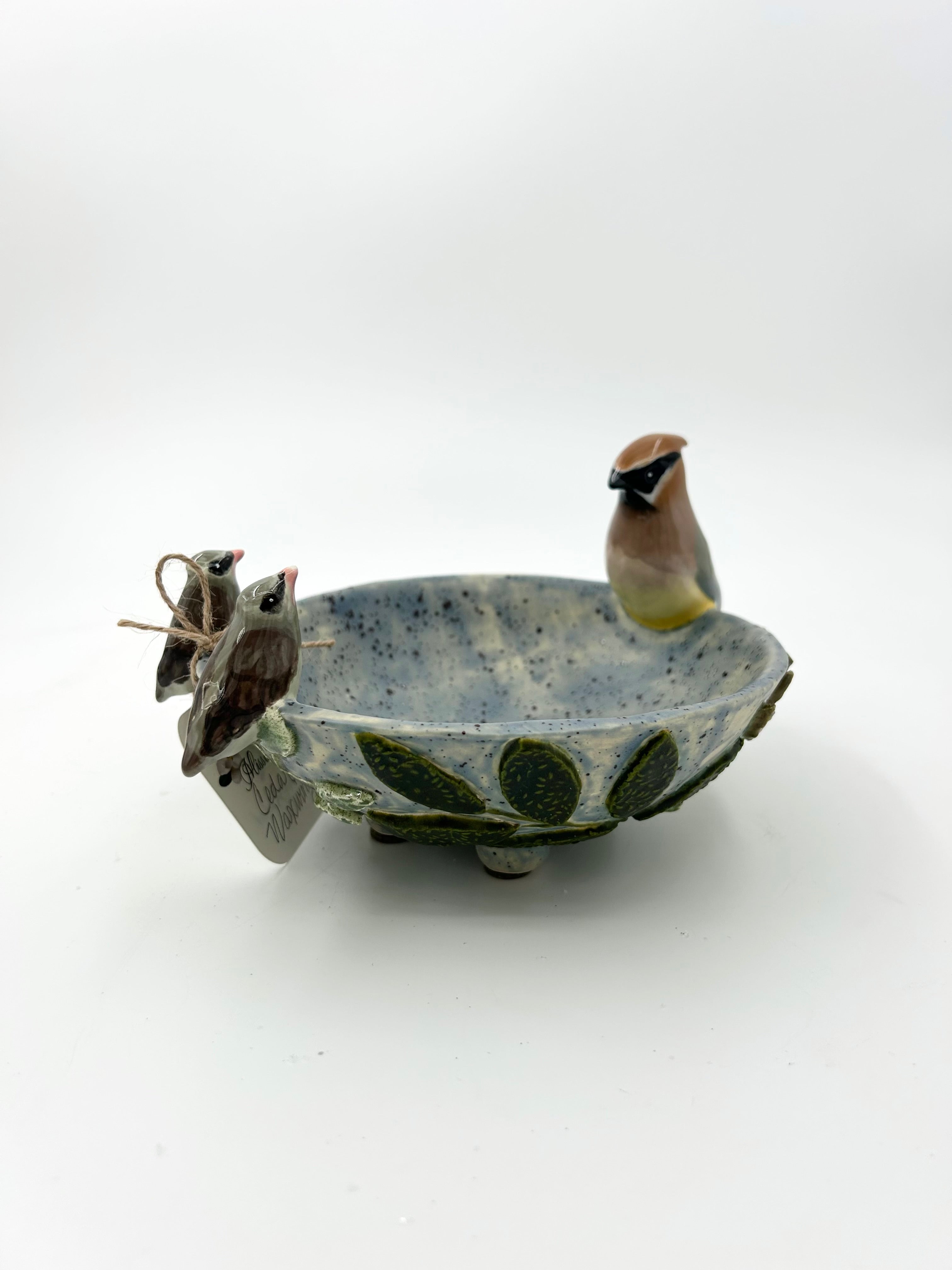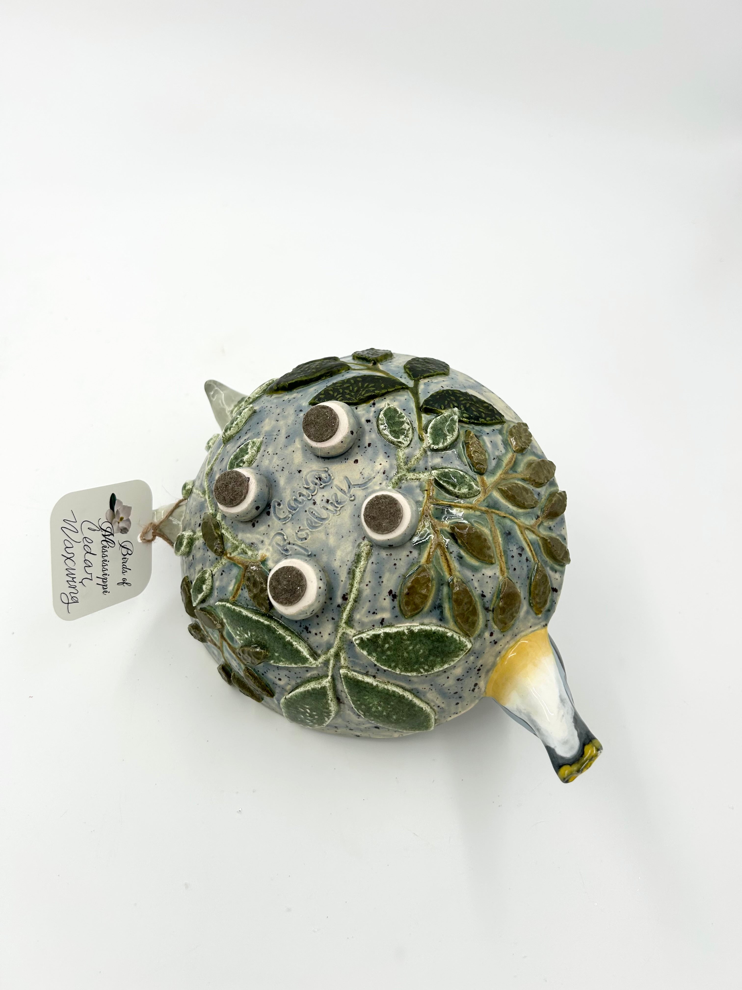 Add a splash of playful Southern charm with the Birds of Mississippi Cedar Waxwing by Carrie Roebuck Pottery. This hand-built pottery bird beautifully captures the spirited character of the Cedar Waxwing, making it a delightful and whimsical accent for any home. Perfect for bird lovers and collectors alike!