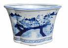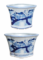 Elevate your outdoor or indoor space with this elegant set of Blue and White Canton Planters. Crafted in a classic oval shape, the 10" and 14" planters showcase timeless porcelain artistry reminiscent of traditional Canton designs. Their refined blue and white palette adds a sophisticated touch to any décor, while the varying sizes offer versatile styling options for your favorite greenery or floral arrangements. Perfect for those who appreciate subtle luxury and heritage-inspired beauty in their living environment.