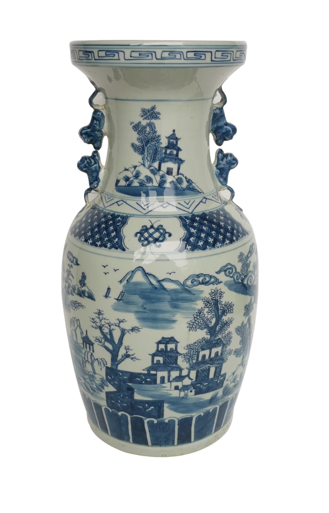 Introduce luxury to your home with our Blue And White Landscape Vase. Meticulously designed with intricate squirrel handles, this exquisite piece adds a touch of elegance to any room. Its striking blue and white landscape perfectly captures the essence of sophisticated living.