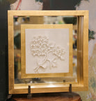 Indulge in the beauty of nature with Botanical Porcelain II. This exquisite artwork features delicate botanical designs on porcelain, elegantly framed in mirror matte and gold. Enhance any room with a touch of sophistication and refinement. Elevate your home decor with this luxurious piece.