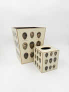 Get ready to elevate your bathroom game with our Brown Egg Bathroom Collection! This chic set includes a wooden wastebasket and tissue cover, adorned with a charming brown egg motif and a luxurious metallic gold border. Perfect for adding a touch of whimsy and style to any bathroom.