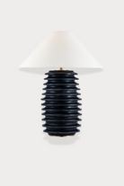 Brighten up your space with the sleek and modern Crenelle Stacked Table Lamp. Made of ebonized birch, this lamp stands at 27.5" tall and has a base width of 23", making it the perfect addition to any room. The 7" round base adds stability and style to this versatile lamp.