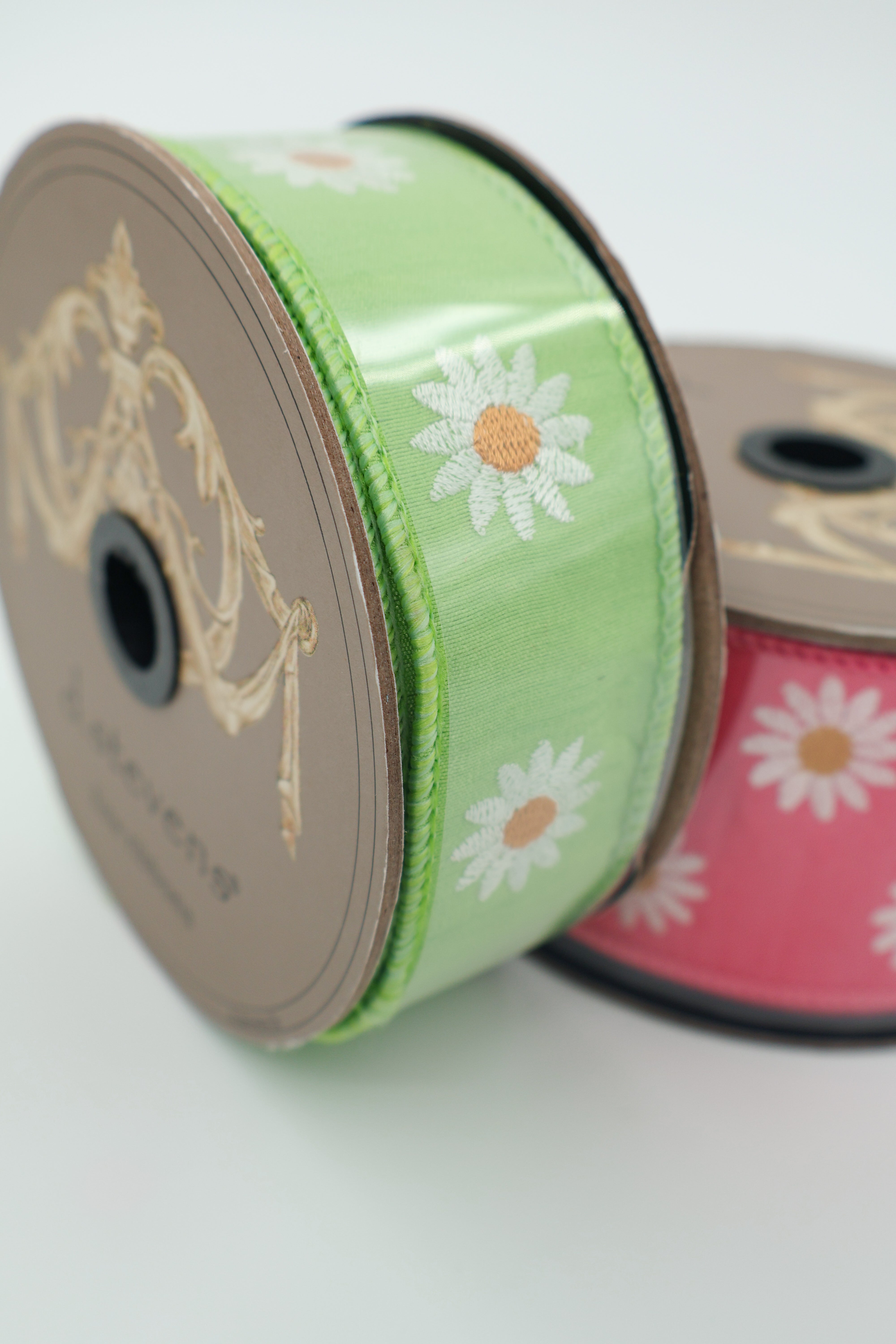 Add a little whimsy to your spring décor with our Daisy Ribbon. This wired ribbon features charming daisies in pink and green and comes in two different widths. Perfect for adding a playful touch to wreaths, garlands, and more!