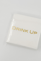 Add some flair to your drinks with our Drink Up Cocktail Napkins! Made from a cloth-like material, these napkins are both functional and stylish. The foil lettering adds a touch of sophistication to any gathering. Cheers to a good time! (Oops, did we spill some humor there?)