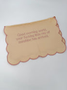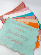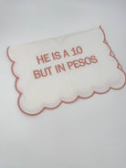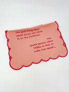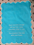These whimsical embroidered towels make the perfect gift. With their humorous sayings and beautiful scalloped edges, they will make a hit in any kitchen. 17" x 23"