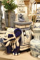 Add a touch of effortless elegance with Emily's Elephant, a blue and white ceramic stool that doubles as a charming piece of decor. This sophisticated stool adds a luxurious touch to any room.