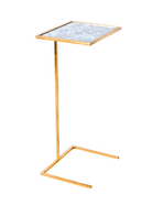This petite drink table combines elegant design with practical function, featuring a sleek base that easily slides under sofas or chairs. Its rectangular antique mirror top offers a refined surface to hold drinks, laptops, or decor, while the hand-finished gold leaf base adds a touch of sophisticated glamour. Compact yet versatile, it measures 12" W x 26" H x 10" D, making it an ideal accent piece for any lounge space.