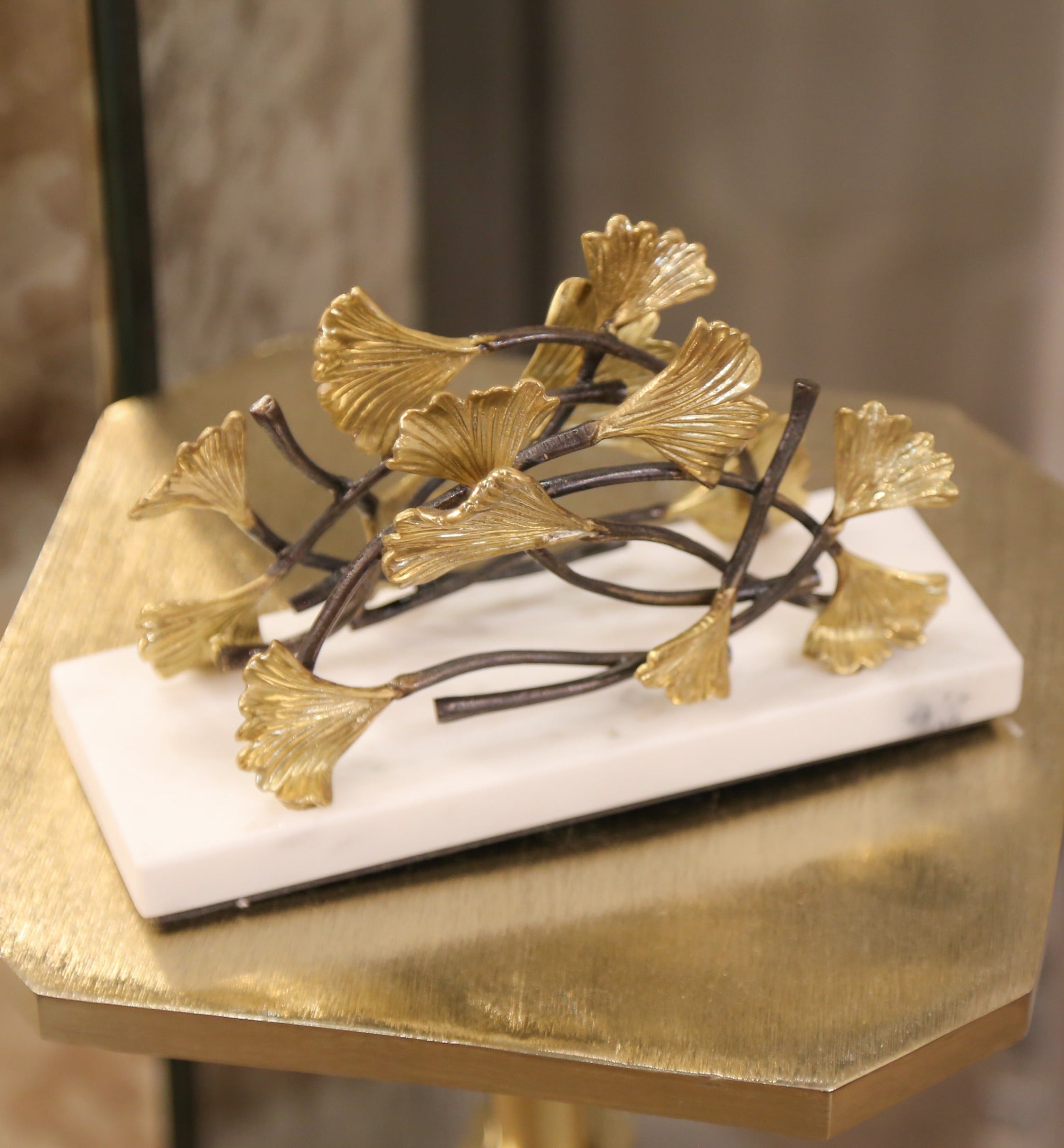 Bring the intricate beauty of nature to your table with the Michael Aram Golden Ginkgo Vertical Napkin Holder. Handcrafted in cast metal, its undulating ginkgo leaves create a sculptural pattern that embodies movement, fragility, and refined artistry. Perfect for entertaining or gifting, this elegant holder transforms everyday moments into a statement of luxury.